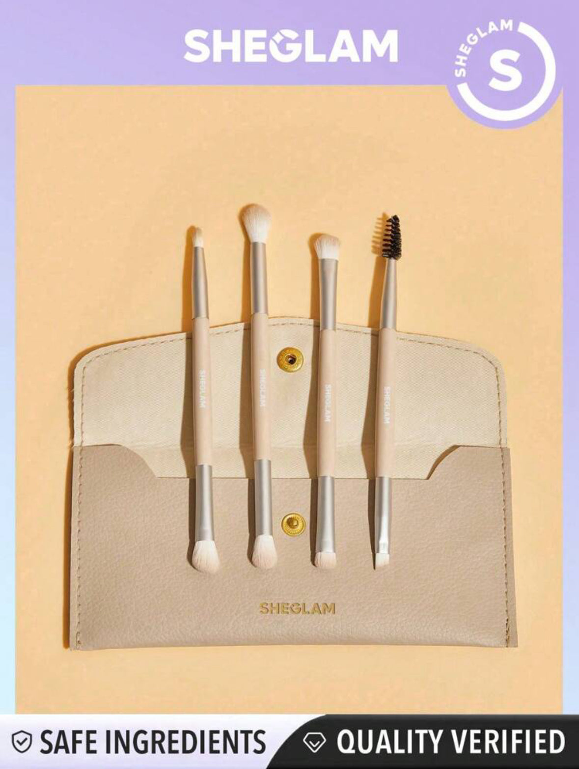 Eye spy the ultimate brush set that gives you next-level lids like a makeup pro. All you need are these 4 essential double-sided brushes, which cover creasing and color for every inch of your eye, even the delicate corners. And what about your brows and lashes? They're part of the crew too thanks to a built-in spoolie that frames your look. Bonus: it comes in a stylish, travel-friendly case so you can bring your best glam game wherever you go!