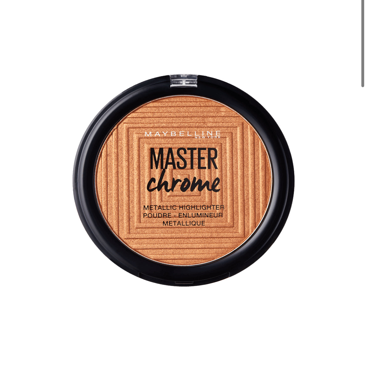 Master Chrome Metallic Highlighter effortlessly envelopes the skin in a molten metal sheen. Meet the secret to brilliant and luminous skin. This highlighter powder drenches skin in a melted metallic finish. Maybelline's pearl pigments leave a reflective finish for a brilliant glowing skin.