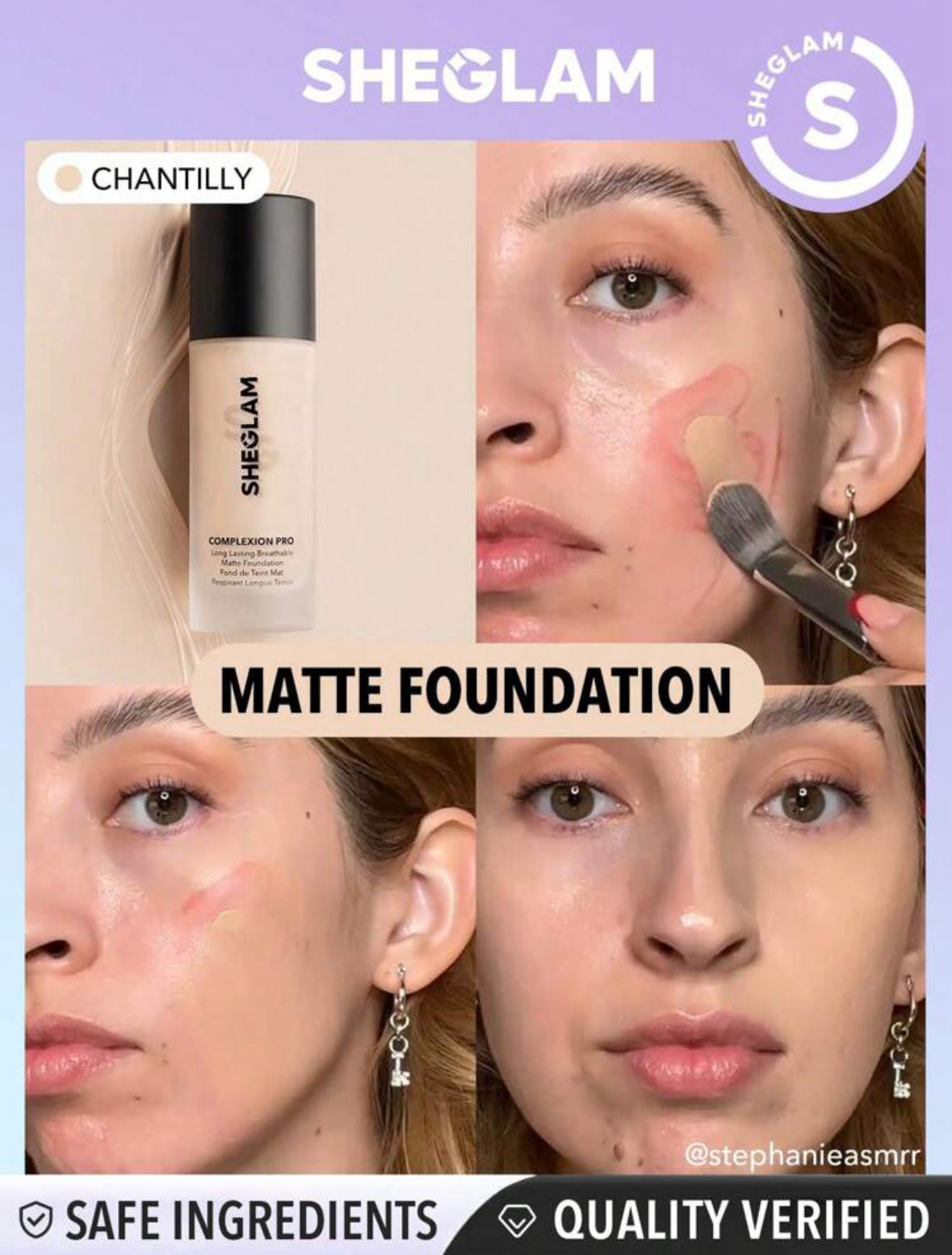 Meet the SHEGLAM COMPLEXION PRO Long-Lasting Breathable Matte Foundation! This next-level sweat- and waterproof formula is free of fragrances and packed with non pore-clogging ingredients, while also remaining breathable and lightweight on the skin. Each face-loving shade delivers a semi-matte, filter-like finish for a look that's flawless yet natural every time. Wear this long-wearing, buildable foundation to the gym or for a night out with the girls—it's a complexion-perfecting pro no matter where you go!