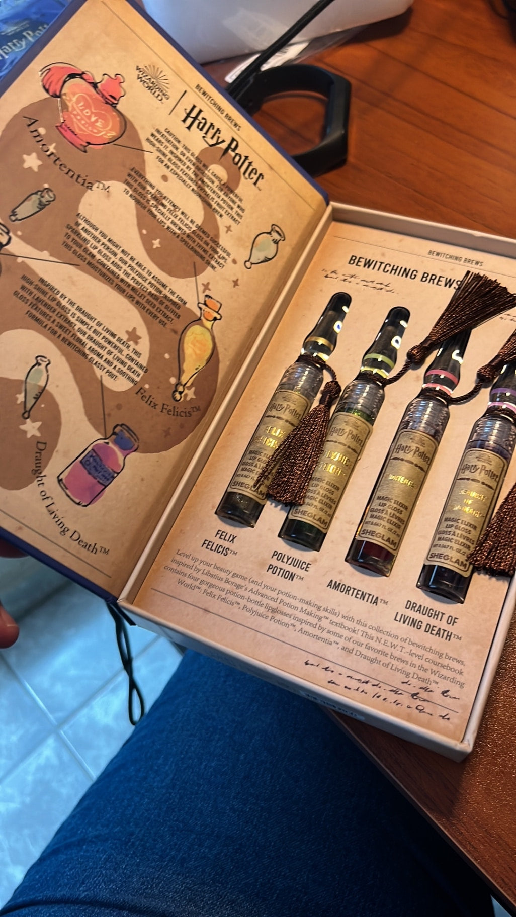 | Set contents | 4 x lip gloss tubes (Felix Felicis™, Polyjuice Potion™, Amortentia™, Draught of Living Death™) |