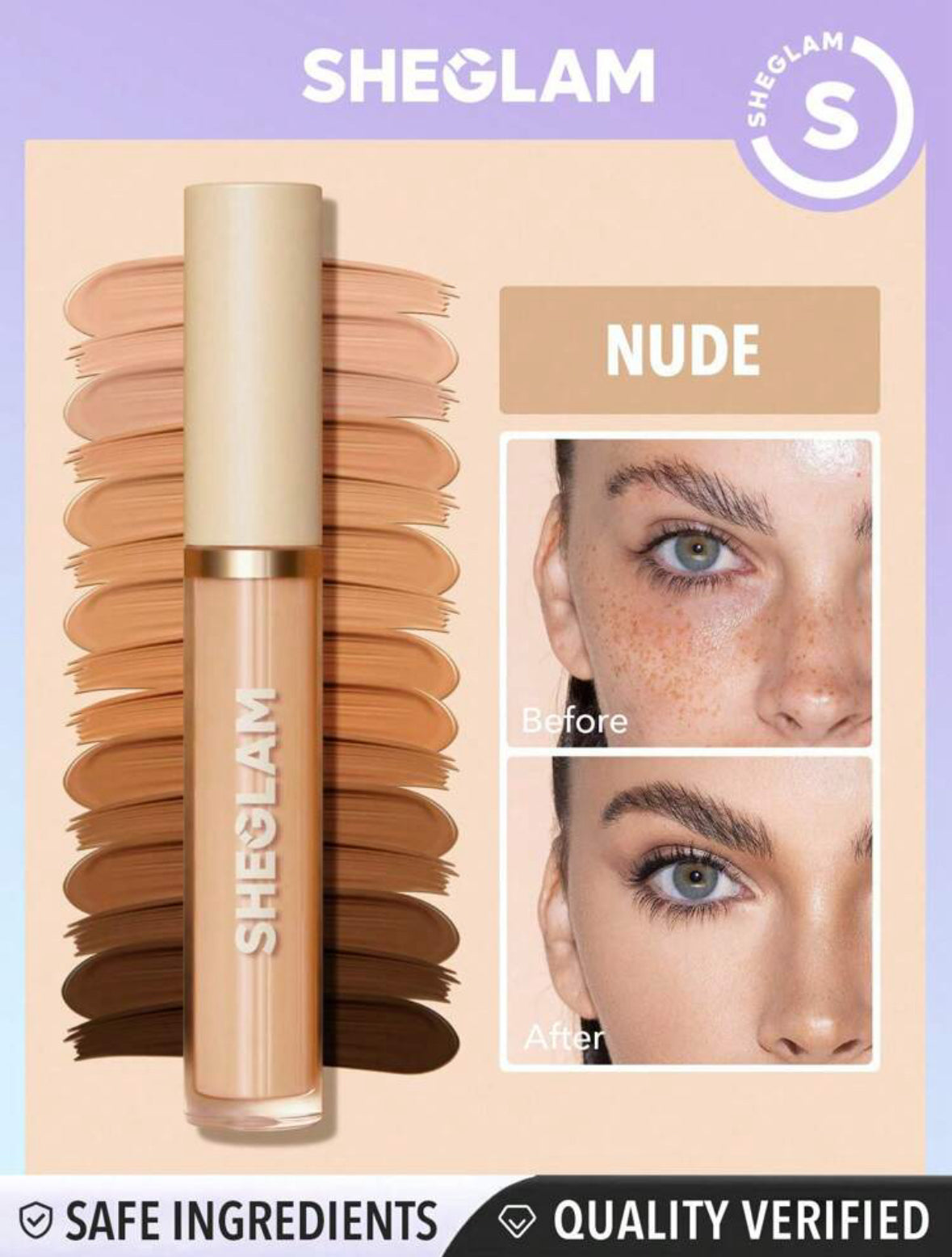SHEGLAM 12HR Full Coverage Concealer has a soft, matte finish that provides your complexion with 12 hours of perfection. Enjoy medium-to-full coverage that covers all unwanted imperfections. Its highly-pigmented, lightweight formula is super buildable for multiple layers that won't settle into fine lines or creases. Our coverage contours, corrects, highlights, hydrates and has multi-action skin-loving benefits. Infused with Portulaca Oleracea and Hamamelis Virginiana Extracts, known for their hypoallergenic properties.