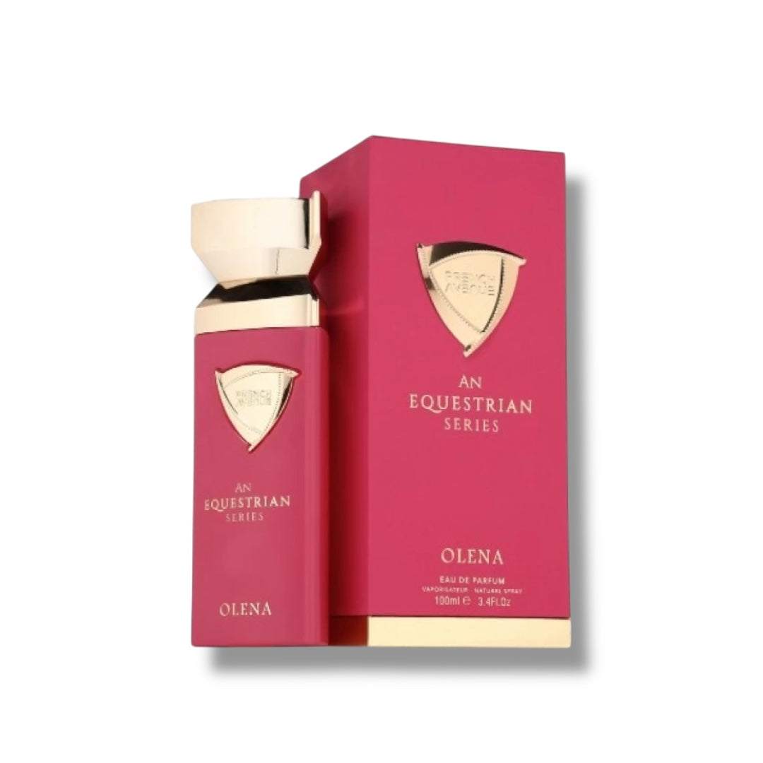 French Avenue An Equestrian Series Olena is a refined floral fruity gourmand fragrance crafted for women who appreciate elegance and sophistication. This 100ml Eau De Parfum opens with invigorating top notes of bergamot, grapefruit, mandarin, and orange, creating a fresh and vibrant introduction. The heart reveals a delicate bouquet of orange blossom, raspberry, and blackcurrant, offering a rich and feminine character. The base notes of marshmallow, whipped cream, ambrette, and musk provide a warm, sensual finish that lingers beautifully on the skin.