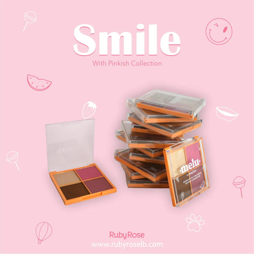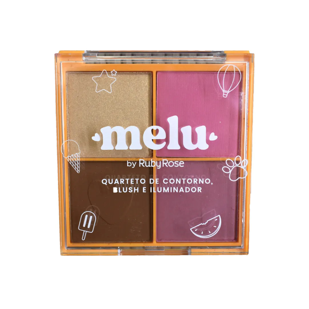 Quartet Contour, Blush et Highlight Melu-by Ruby Rose, une nouveauté incroyable, haute pigmentation, le contour en poudre est léger et modulable, sa texture douce se fond sans effort dans la peau