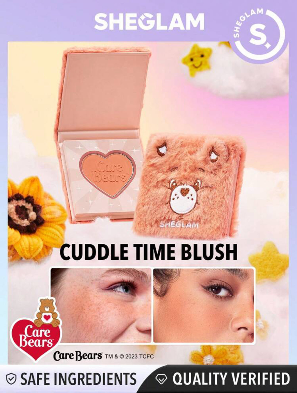 Palette de fards à joues en poudre rose SHEGLAM X Care Bears Cuddle Time Blush-Tickled à haute teneur en pigments, ne se décolore pas, longue tenue, maquillage naturel léger pour le visage, Black Friday Winter Blush