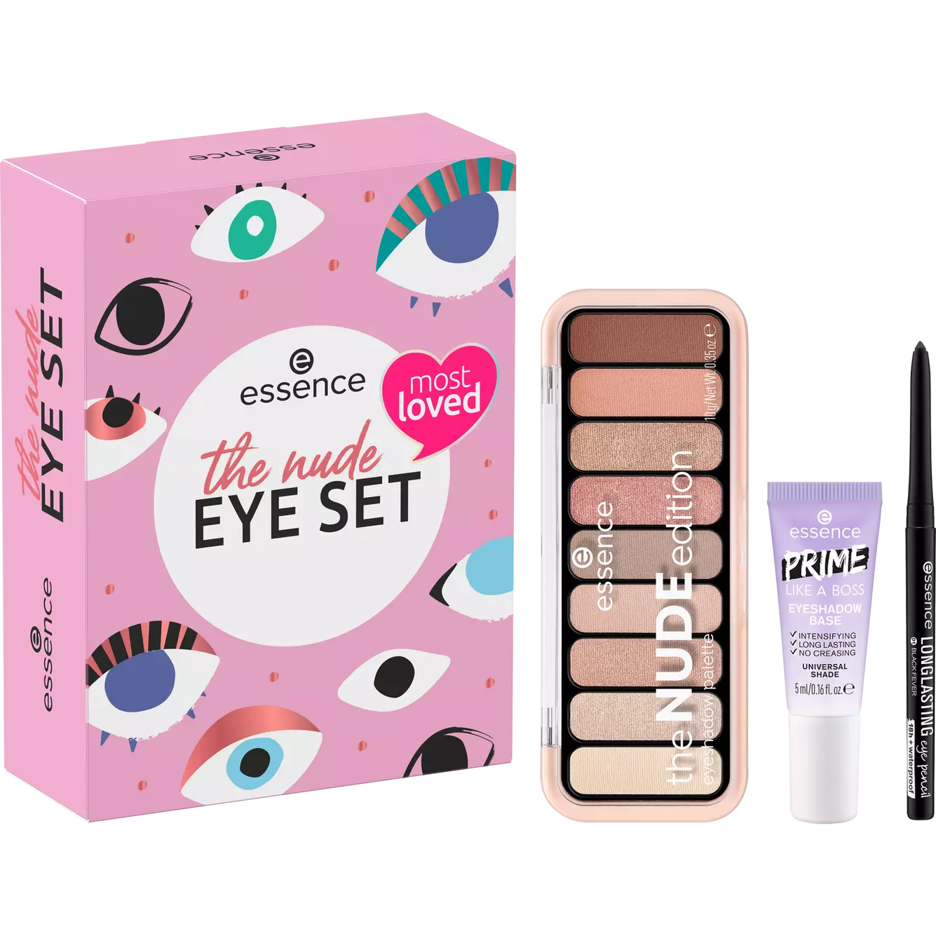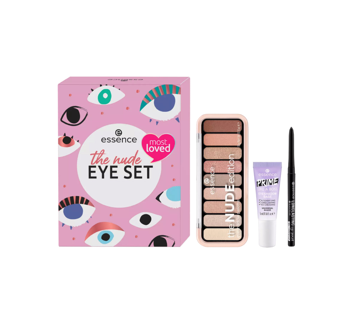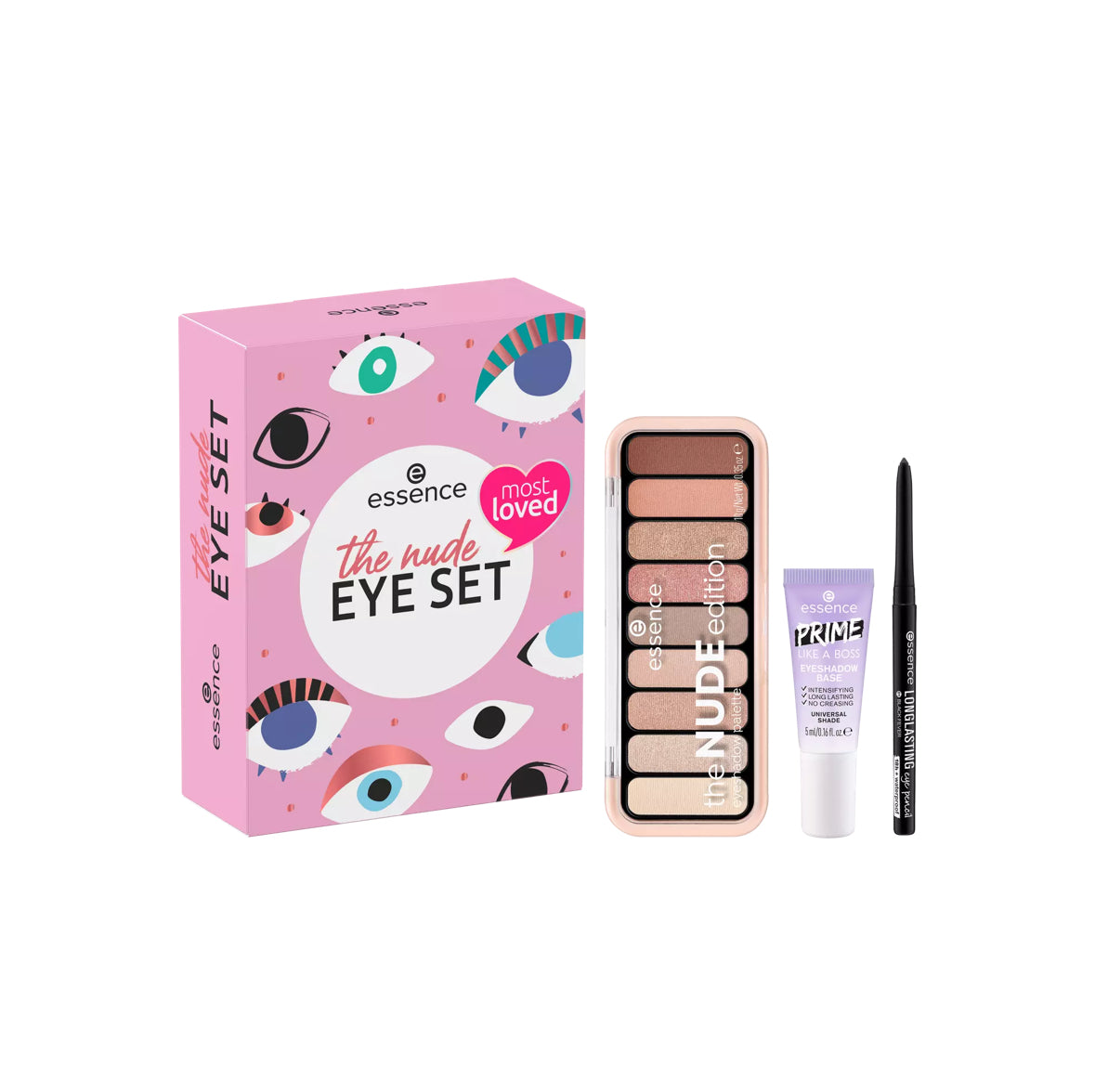 Մերկ ԱՉՔԻ ՍԵԹ-ի երեք ապրանքների շնորհիվ դուք կարող եք կարճ ժամանակում ստեղծել աչքերի բնական տեսք: Ստվերաներկի պրայմերն ապահովում է ստվերաներկի կատարյալ հիմք և գունավոր ինտենսիվ, երկարատև ավարտ: NUDE ստվերաներկերի ներկապնակն առաջարկում է ինը տարբեր մերկ երանգներ՝ կոպերի վրա բնական աչք գրավողներ ստեղծելու համար: Սև գույնի երկարատև աչքի մատիտը ուժեղացնում է տեսքը, իսկ ոլորվող քաջալ մատիտը ապահովում է երկարատև արդյունք: