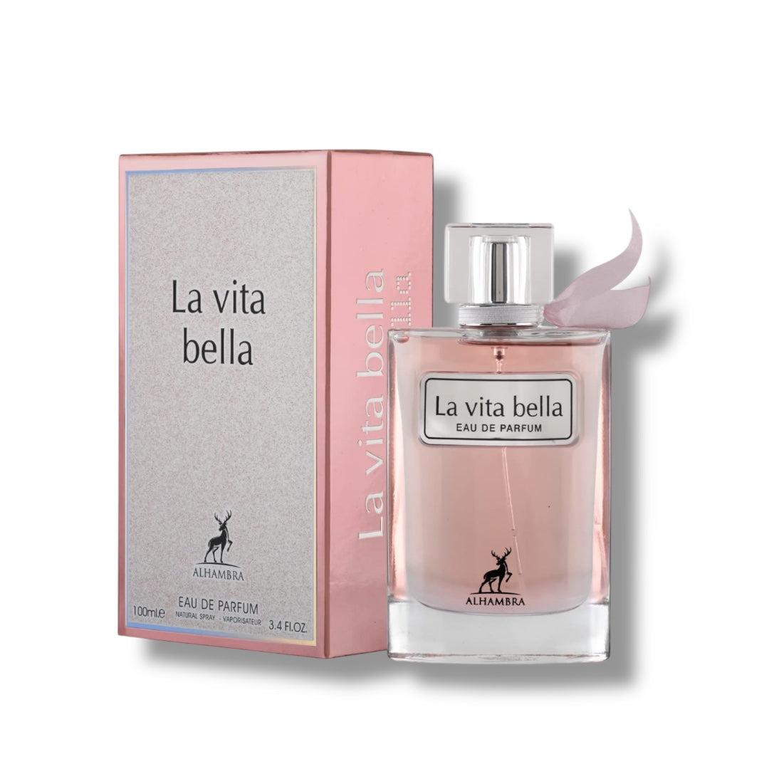Experience the captivating allure of Maison Al Hambra's La Vita Bella. This Eau de Parfum embodies elegance and sophistication. Its enchanting fragrance unfolds with a harmonious blend of floral and fruity notes. La Vita Bella leaves a lasting impression of timeless beauty. Perfect for any occasion, this fragrance is a true celebration of life.