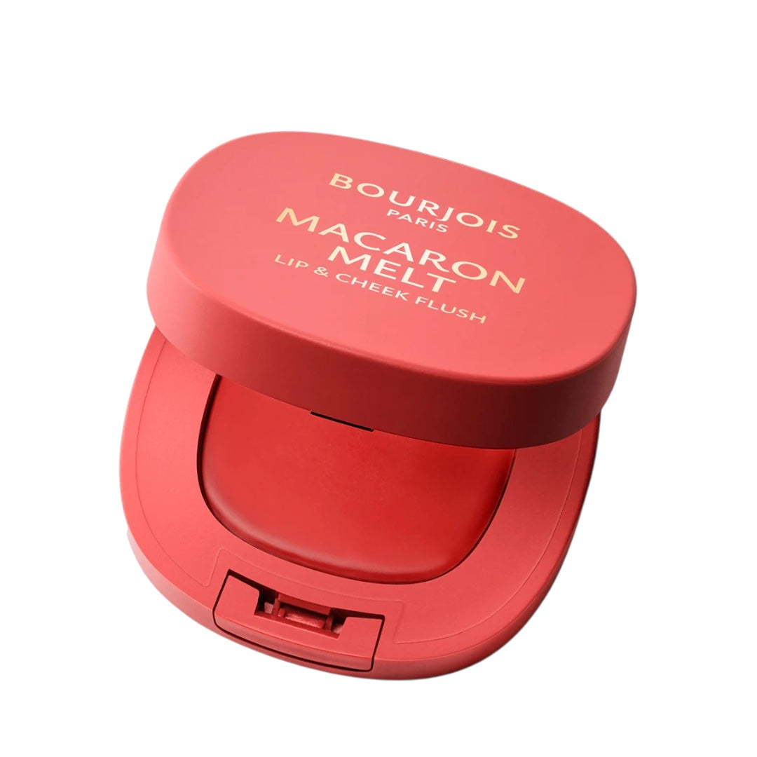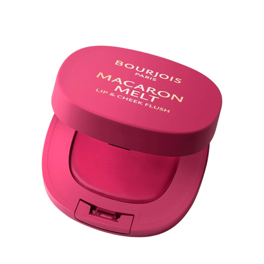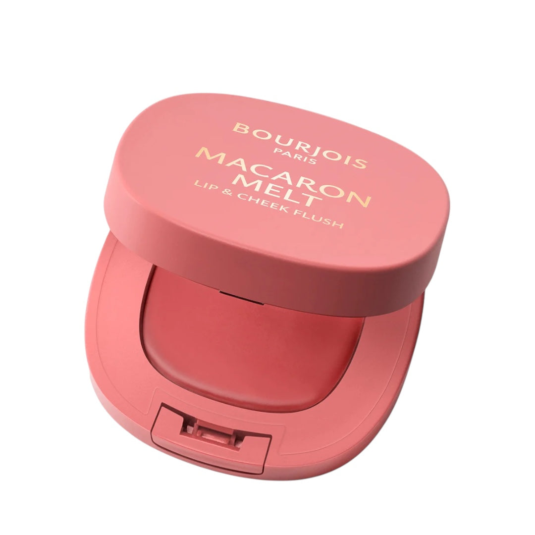 Bourjois Macaron Melt is a dual-purpose cream-to-powder lip and cheek flush that delivers a matte, blurred finish with buildable colour.