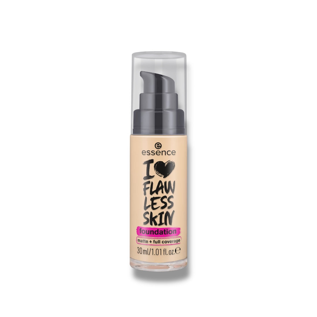 Essence I Love Flawless Skin Foundation (30ml) provides a matte, full-coverage finish with its liquid, yet long-lasting consistency.