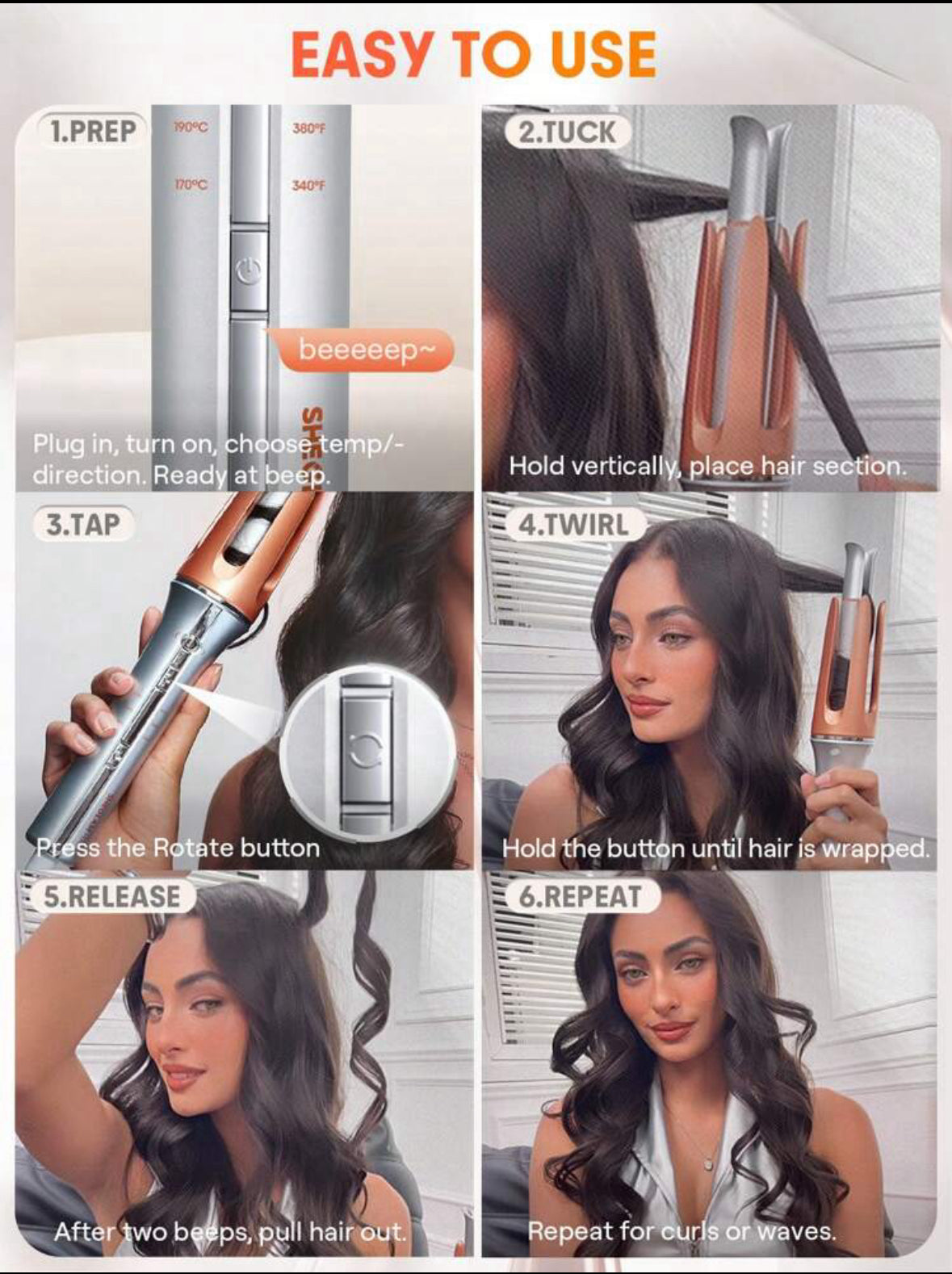 SHEGLAM HAIR It-Curl One-Touch Instant Curler,Automatic Curling Iron,Auto Hair Curler,25mm Automatic Hair Curler With 3 Temperatures,Creating Casual & Elegant Smooth Styling,Fast Heating & 2-Way Rotation,Automatic Shut-Off,Anti-Scald & Anti-Tangle Rotating Curling Wand,Touch Instant Curler For Hair Styling - UK Plug